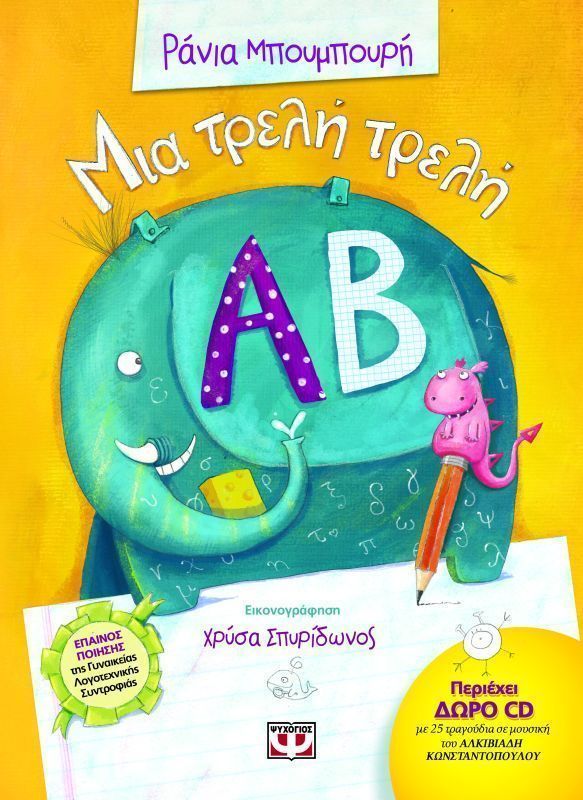 A wonderfully looney alphabet book that was awarded by the Greek Women’s Litarary Society in 2012. Each letter has its own cleverly written poem that tells a different and completely unique story about each of the 24 letters of the Greek alphabet. The book is accompanied by a splendid CD that includes songs based on the poems of the book and interpreted by some of the most prominent and well-loved singers in Greece today: Savina Giannatou, Phoebus Delivorias, Doros Dimosthenous, Nikos Ziogalas, Giannis Zouganelis, Panos Mouzourakis, Dionysis Savvopoulos, Dimitris Starovas.