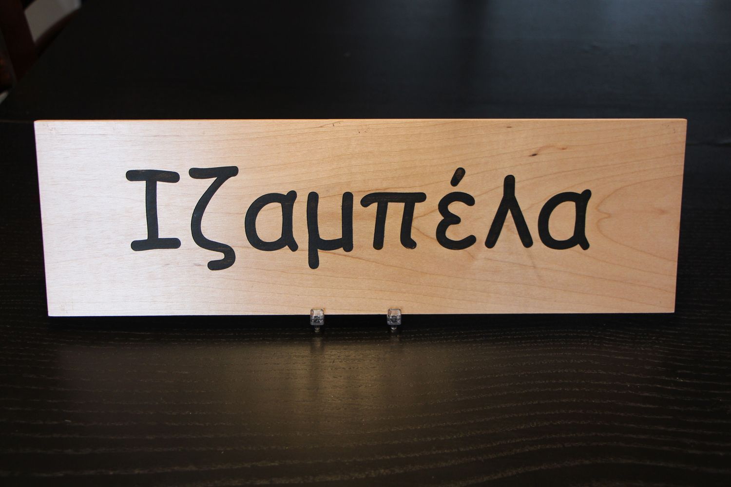Personalized name in Greek on a quality 4.5 X 14.5 inch wood piece. A unique touch to show your friends your heritage. Indoor use only. Custom product designed by Kantyli.