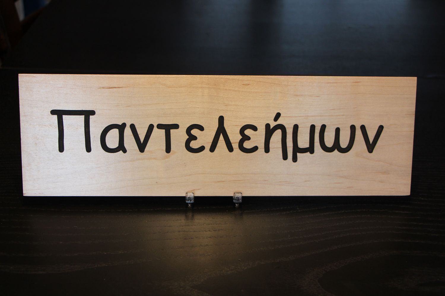 Personalized name in Greek on a quality 4.5 X 14.5 inch wood piece. A unique touch to show your friends your heritage. Indoor use only. Custom product designed by Kantyli.